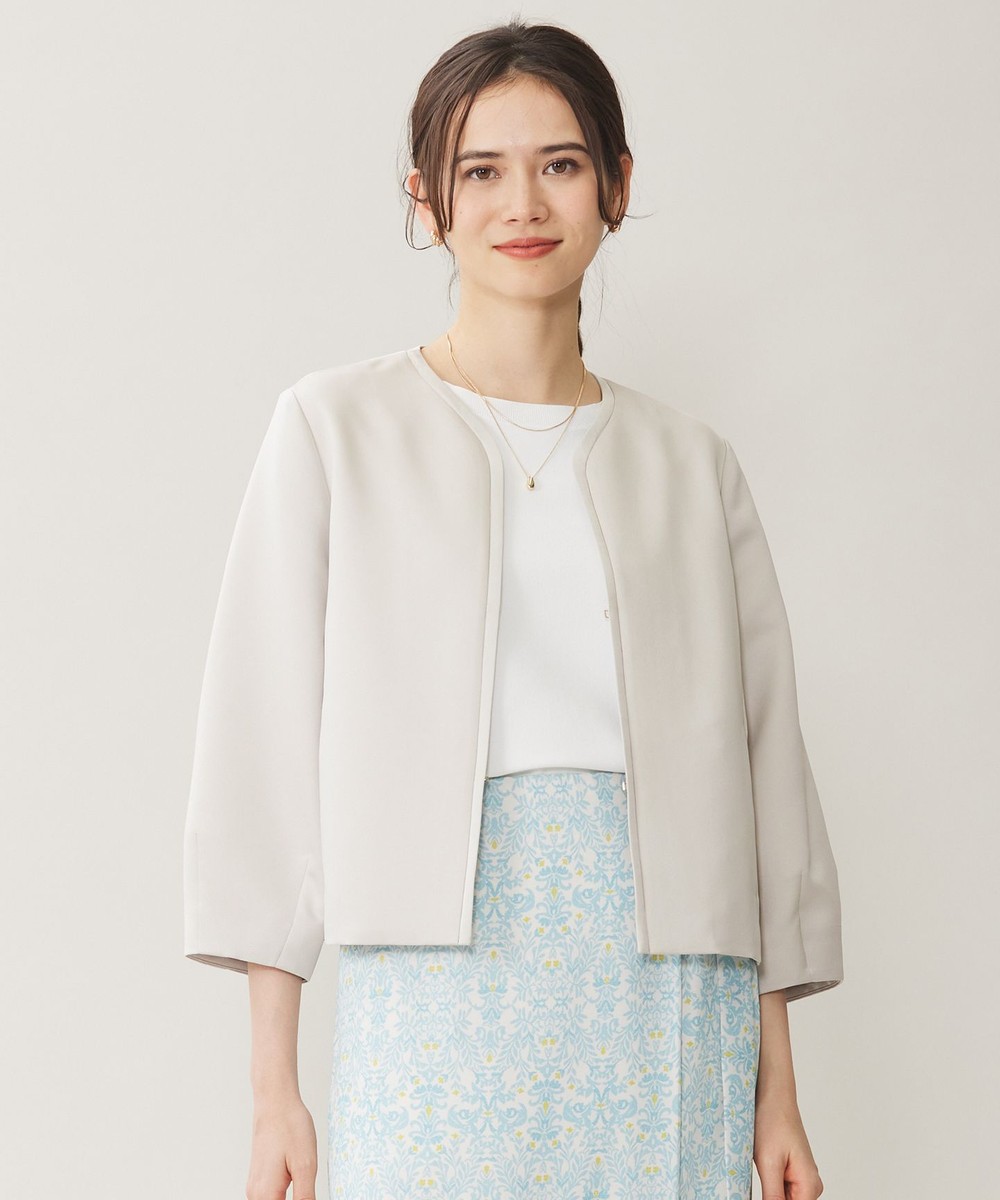 短すぎない丁度良いジャケット丈、スカートやワンピースと合わせて脚長効果も期待大。
